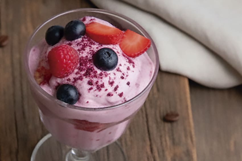 Incorporar el puré de frutillas a la crema con movimientos envolventes hasta que la mezcla sea uniforme y de color rosa.