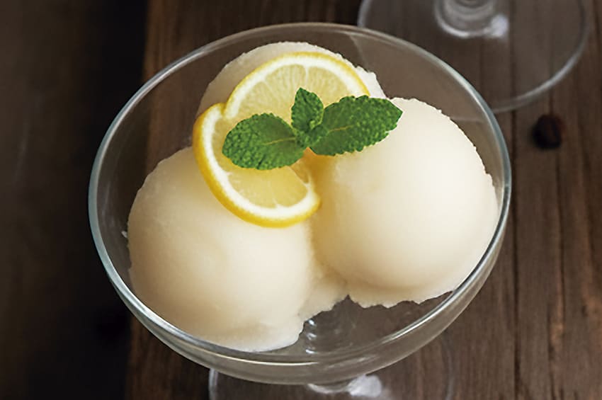 Verter la mezcla en un recipiente y congelar por espacio de 6 horas. Revolver cada 30-45 minutos durante las primeras horas para romper los cristales de hielo.